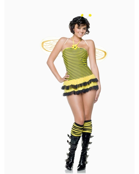 Everyone will be all a buzz when they see you in our Midnight Stinger Bumblebee Costume. This super sexy getup will definitely make you Queen Bee. This Stinger Bumblebee getup includes yellow wings, tie-back dress, leg warmers and head piece. Available in two sizes, small-medium and medium-large, this costume will fit women of all shapes and sizes. Black, patent-leather lace up boots pictured here not included but can be purchased separately. Found what you need? Before checking out, be sure to take a look at the accessories we have compiled just for this outfit. They are an easy and inexpensive way to enhance an already great costume. If you order today before 3:00, we will ship out your costume today. Whether you need a great getup for Halloween or simply for your child to play dress up in, we have thousands of high quality costumes to choose from, all affordably priced. Check back often for our specials and sales promotions.