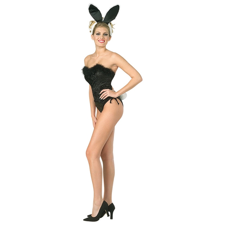 Whether you’re passing out cocktails or candy you are sure to look the part of the famous tuxedo wearing bunnies. This classic bunny adult costume includes white and black rabbit ears and a black velvet leotard with a marabou trim and a white tail. Adjustable thigh cinch for that perfect fit. Start practicing your bunny dip and the bunny hop for your next costume party.