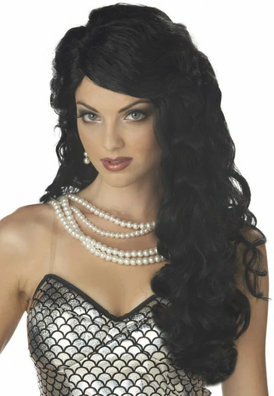 Go for a gothic twist with your Mermaid costume this Halloween! This black bold wig features a side part and long spiral curls. Dark and daring, you’re sure to spice up the night!