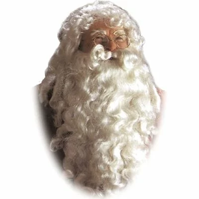 The Santa Claus wig and beard preferred by most mall Santas. Includes a deluxe Santa wig and beard set with long flowing curls, white as snow.