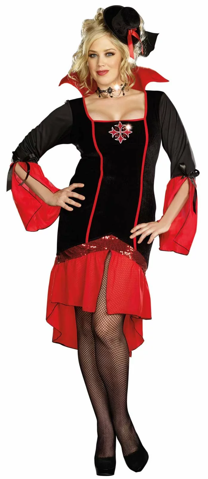 The Seductive Vamps Like Us Adult Plus Adult Costume is very sexy and so amazing. The costume makes you looks spectacular. It is very comfortable and you will got a lot of fun to wear it. Use this Seductive Vamps Like Us Adult Plus Adult Costume as your Halloween costume party and all other costumes look pale.
