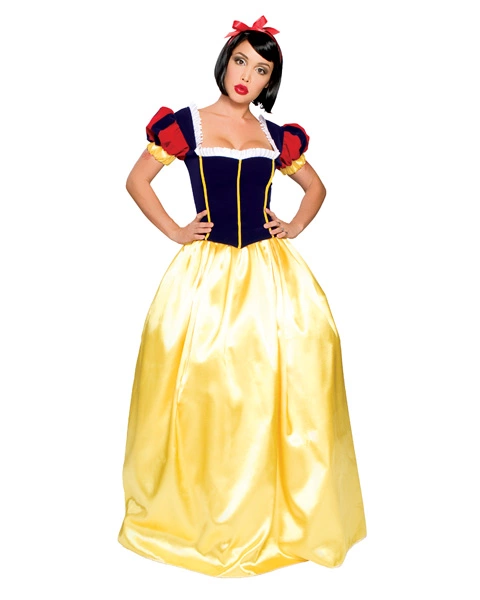 Snow white is the beautiful princess in the lovely blue and yellow gown. If you want something true to the original but with a bit more modern day sexiness then this costume is for you. The Sexy Snow White Deluxe Women’s Costume features a corset, skirt and headband. The blue corset top features yellow trim on corset, red and blue puff sleeves and the lace up corset back. The full length ball gown skirt is made of yellow satin and has an attached red bow. The third piece is the simple red hair bow. The deluxe ensemble is a high quality and true to the original but with a bit more sex appeal. * Includes corset top, full length skirt with bow and headband * Comes in Deluxe Packaging