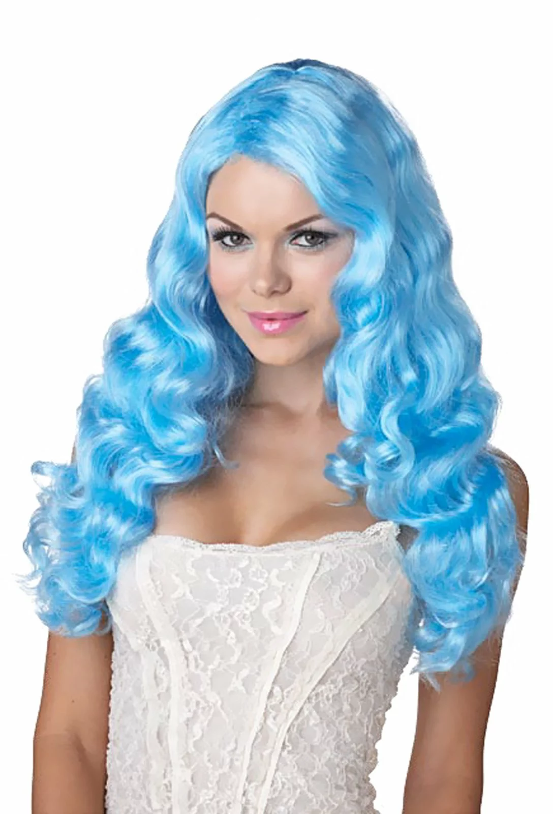 The Sweet Tart (Blue) Adult Wig features long, tight-wave locks.