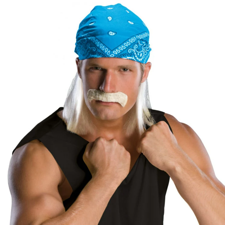 Dominate the ring and intimidate the competition with this Wrestling Strongman Wig! Even without the muscles, this wig will give you that fierce and tough look you’re going for! The Wrestling Star Wig has a blue bandana with attached platinum blonde wig and includes a matching mustache.